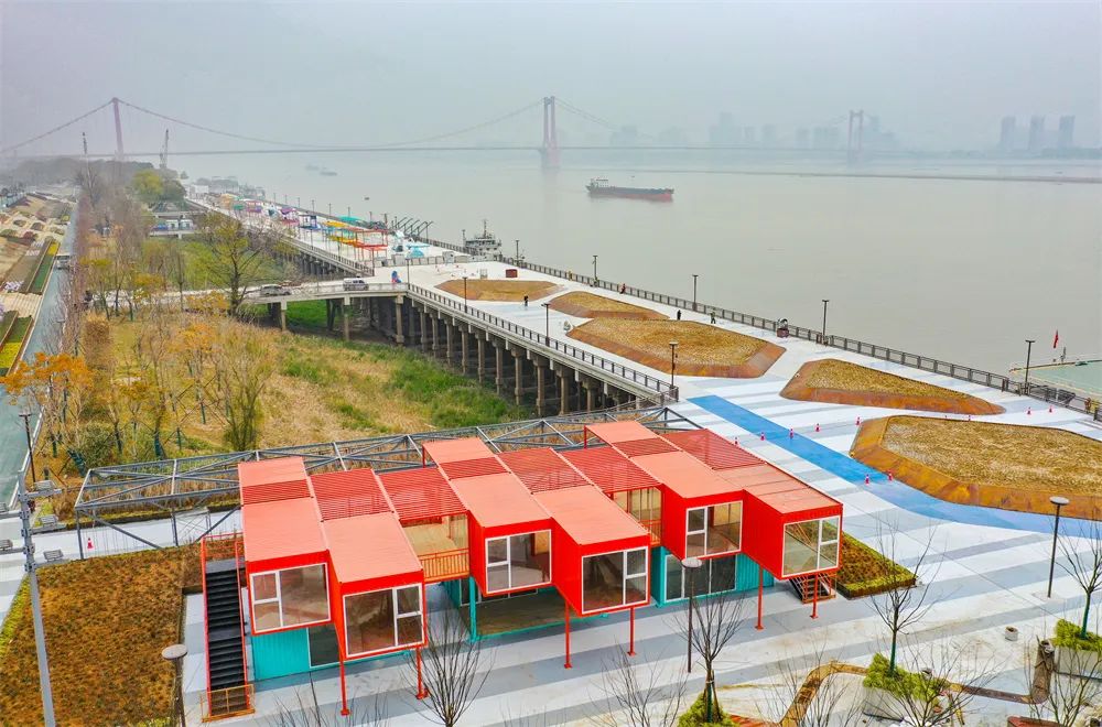 ? ? ? ?拆除多余碼頭裝置,恢復江灘原貌,替老碼頭“卸妝”。對碼頭原有19座閘口進行了集并,變成了一主一次兩座閘口,大幅提升了通達感;采用現代防洪技術與理念,以“生態緩坡堤防+拼裝式防洪墻”的設計,讓堤壩“隱身”,弱化了“江、灘、堤、城”之間的界限,使原本獨立的景觀相互融合,又豐富了寶貴的公共空間。