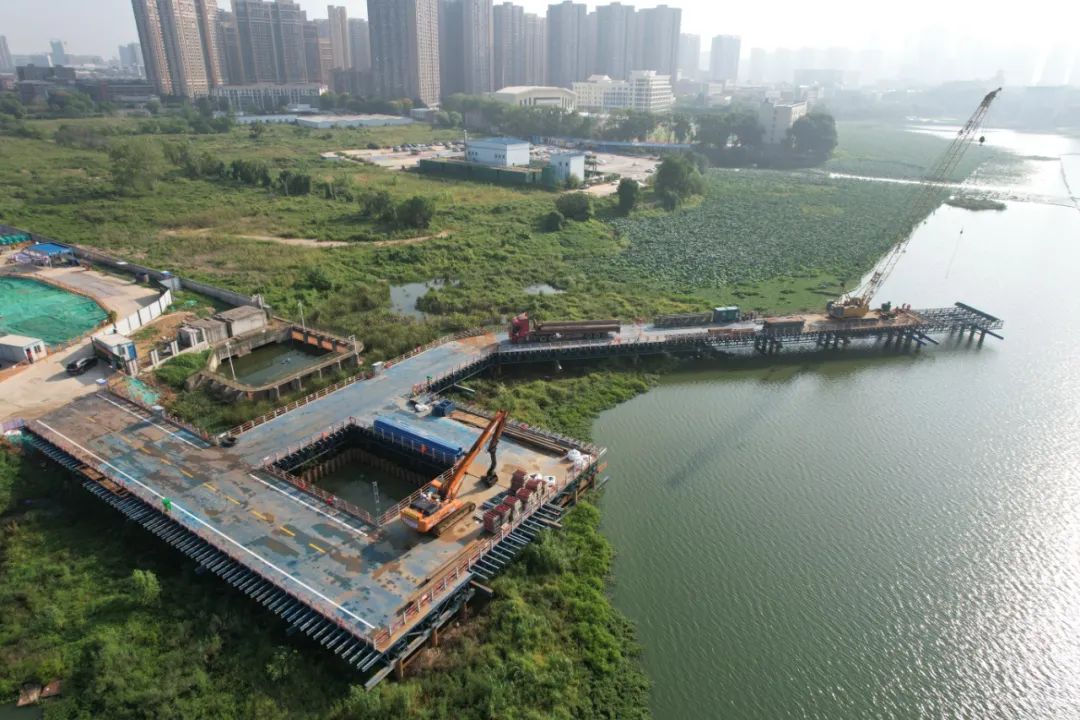 ? ? ? ?自2023年6月底開工以來,陸地明挖段、高壓旋噴樁、鋼板樁支護、排氣井、沉井、水上鋼棧橋平臺等全面開工。項目由橋梁公司、千湖海綿(奧鑫)公司負責施工,施工周期一年,總投資約2億元。