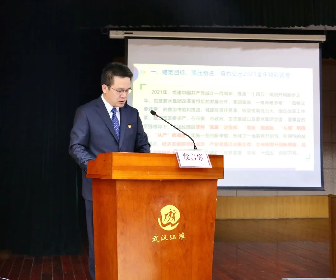 ? ? ? ?武漢生態投資集團黨委委員、副總經理,碧水集團黨委書記、董事長王文珊出席會議并作了題為《蹄疾步穩,真抓實干,為實現碧水集團做優做大做強接續奮斗》的講話,碧水集團黨委副書記、總經理、副董事長趙強作了題為《踔厲奮發,篤行不怠,奮力開創碧水集團轉型發展新局面》的經濟工作報告。大會由集團黨委委員、監事會主席王江紅主持。